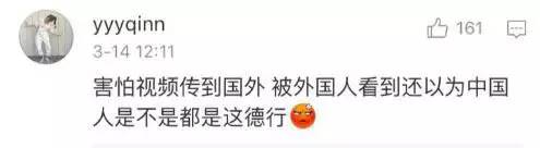 但如此“幽默”的表达显然仍无法令多数受众接受,一个名为“yyyqinn”就表示,“害怕视频传到国外,被外国人看到还以为中国人是不是都是这样的。”