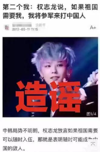 比如某韩国歌星只不过回答了一个“何时入伍”的问题,就被一营销号写成了其“准备攻打中国”的言论:
