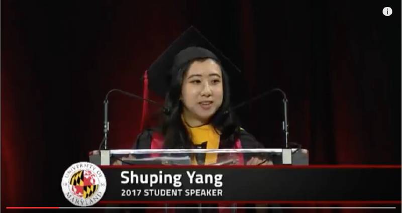 以下是Yang Shuping在马里兰大学毕业典礼演讲的全文: